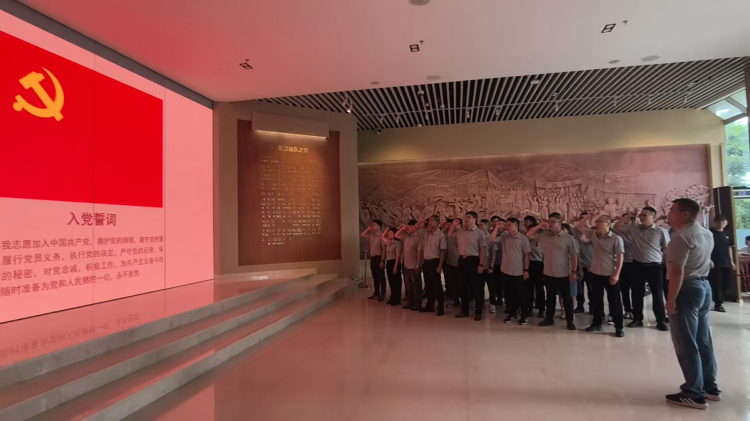 “我志愿加入中國共產(chǎn)黨……”在東江縱隊紀(jì)念館莊嚴(yán)的黨旗前,全體黨員整齊列隊,在黨支部書記游才文同志的帶領(lǐng)下,重溫入黨誓詞。字字千鈞的承諾既是對革命先輩精神的傳承,更是對新時代使命擔(dān)當(dāng)?shù)那f嚴(yán)宣告。